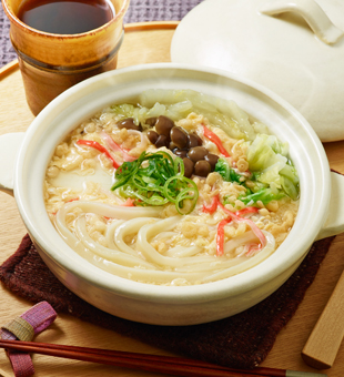 卵と具材のとろとろがうれしい、鍋焼きうどん。