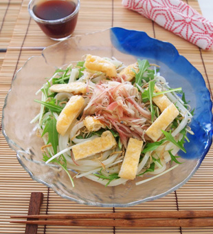 油揚げとちりめんじゃこは、フライパンなどでカリカリになるまで焼いてください。香ばしい風味と旨みがうどんのおいしさを引き立ててくれます。ちりめんじゃこは、お好みでごま油と一緒に炒め、ごま油ごとかけてもOKです。