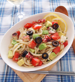 たことトマトのサラダうどん