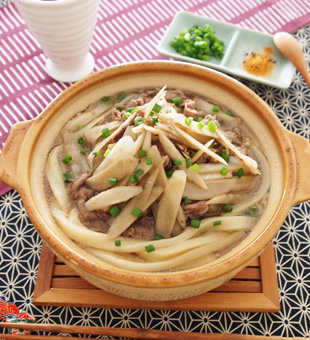 寒い冬にぴったり。旬のごぼうがたっぷり入った鍋うどんです。