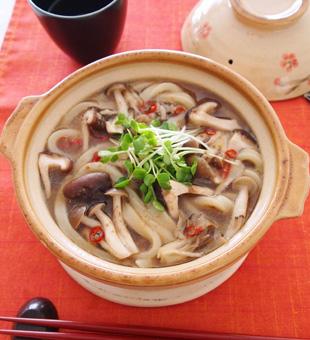 3種のきのこの旨みが詰まった、ピリ辛中華風の鍋うどん。