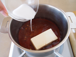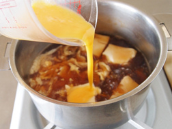 ひと煮立ちしたら、絹ごし豆腐を加えて約1分煮る