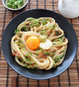 バターと卵黄のコクにかつお節の旨みがうどんとの相性抜群。