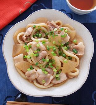 豚バラ大根の旨みが、もちもちのうどんにしみこんでおいしい!