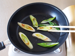フライパンにサラダ油を熱し、長ねぎの両面を焼く