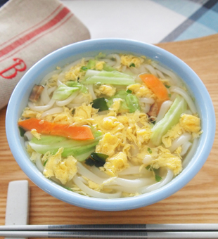 ふんわりたまごのとろりとしたスープがツルツルとしたなめらかな食感の稲庭風うどんとベストマッチ!