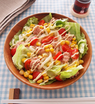 希釈しためんつゆ(適量)をかけ、マヨネーズを細く絞る