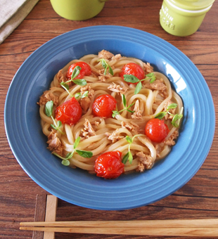 レンジ1回で!ツナとトマトのワンボウルうどん