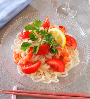 市販のフレンチドレッシングを使えば和えるだけで簡単に作れ、冷凍うどんはレンジで調理できるので、暑い夏に大助かりのレシピです。「稲庭風うどん」のつるつるとした口当たりとのどごしの良い食感がたまりません。
