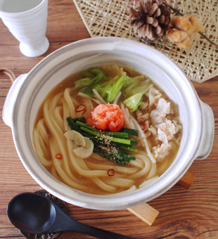 濃厚なコクと旨みがうどんにしみこみながらもモチモチとしたうどんのコシもしっかり味わえます。