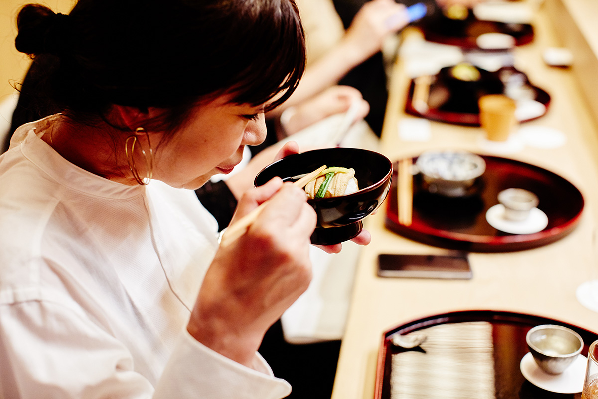 今回は、全6種の銘柄米のパックごはんを使い、ミシュランガイドで開業からわずか半年で一ツ星を獲得した『割烹 喜作』の店主・森 義明氏に、すべてにパックごはんを使ったいまだかつてない懐石料理を作っていただきました。使ったのは、「魚沼産こしひかり」「新潟県産こしひかり」「北海道産ななつぼし(2023年9月製造終了)」「北海道産ゆめぴりか」「秋田県産あきたこまち」「山形県産つや姫」。食べ物に造詣の深いグルマンの方々に、パックごはんのおいしさを味わっていただく晩餐会です。