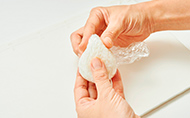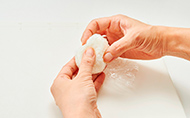1の1/2をラップにのせ、お好みの具を詰めて雪だるまの形ににぎる。