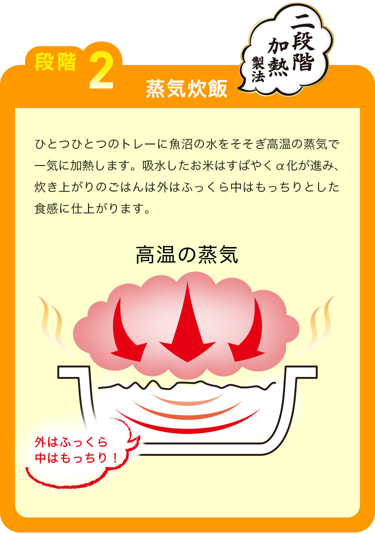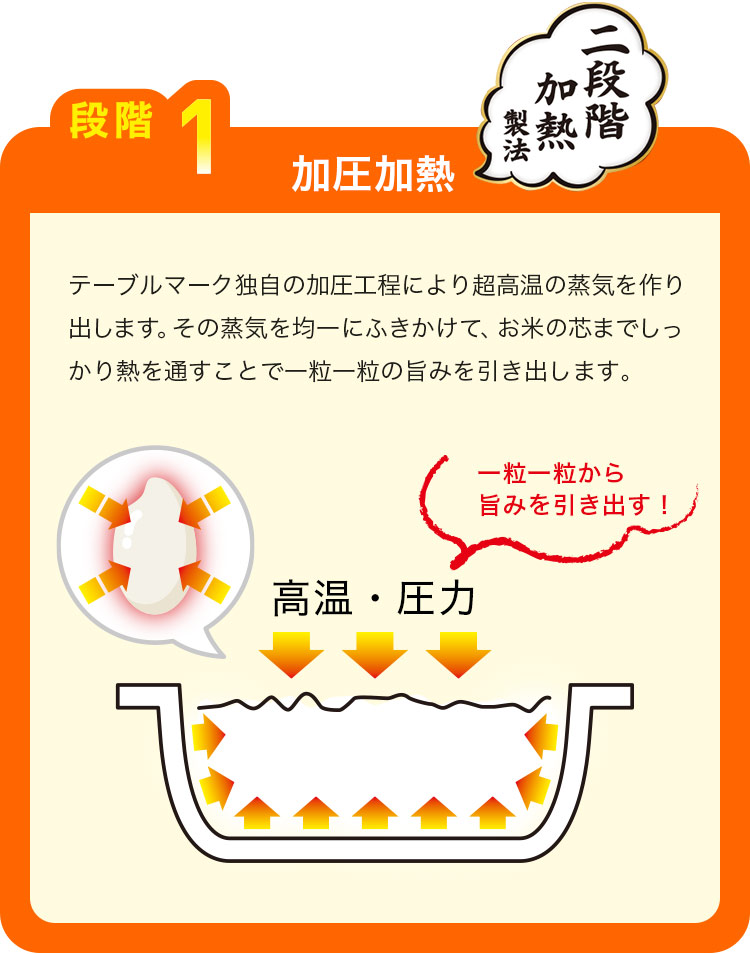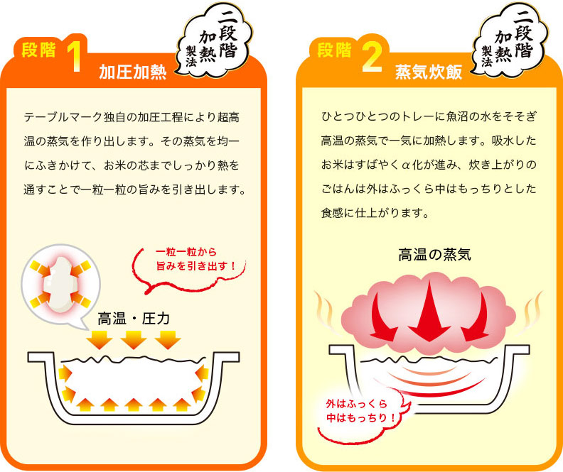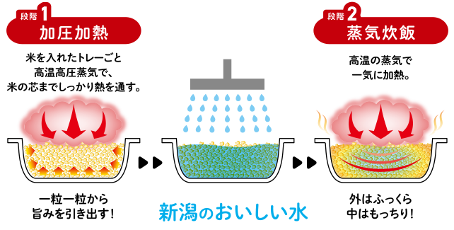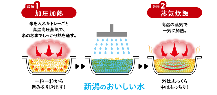 加圧加熱と蒸気炊飯、2度の加熱がおいしさのヒミツ。