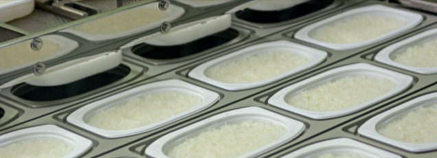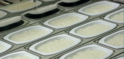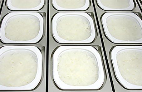 お米の充填から炊飯、蒸らしまでの工程をトレー内で行います。
