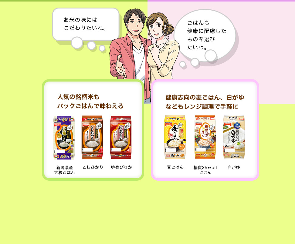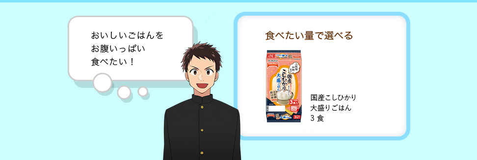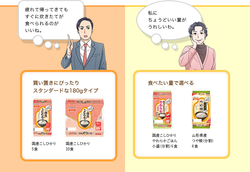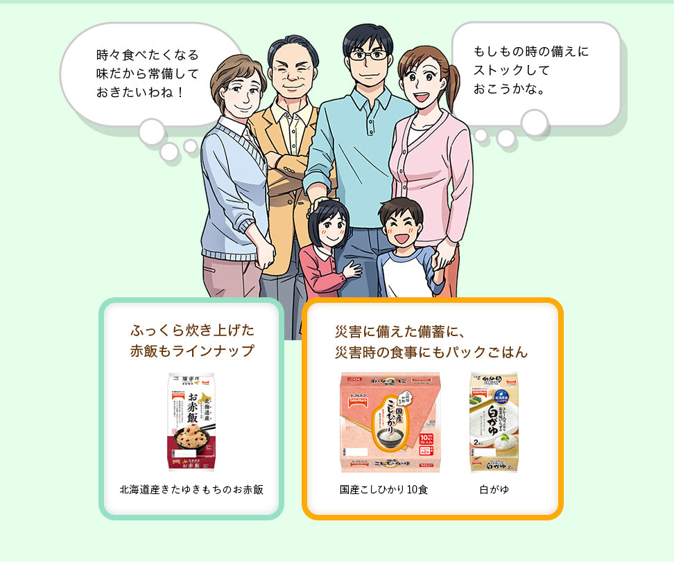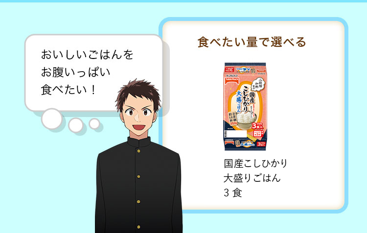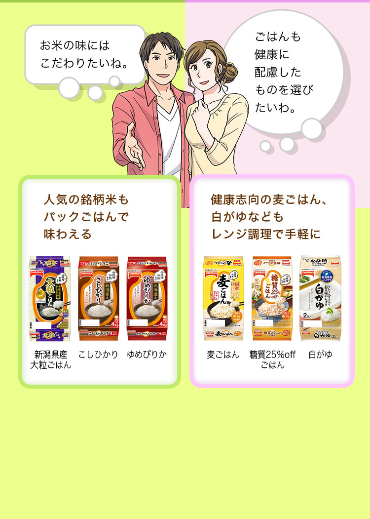 簡単に炊きたてのおいしさが楽しめるパックごはん。