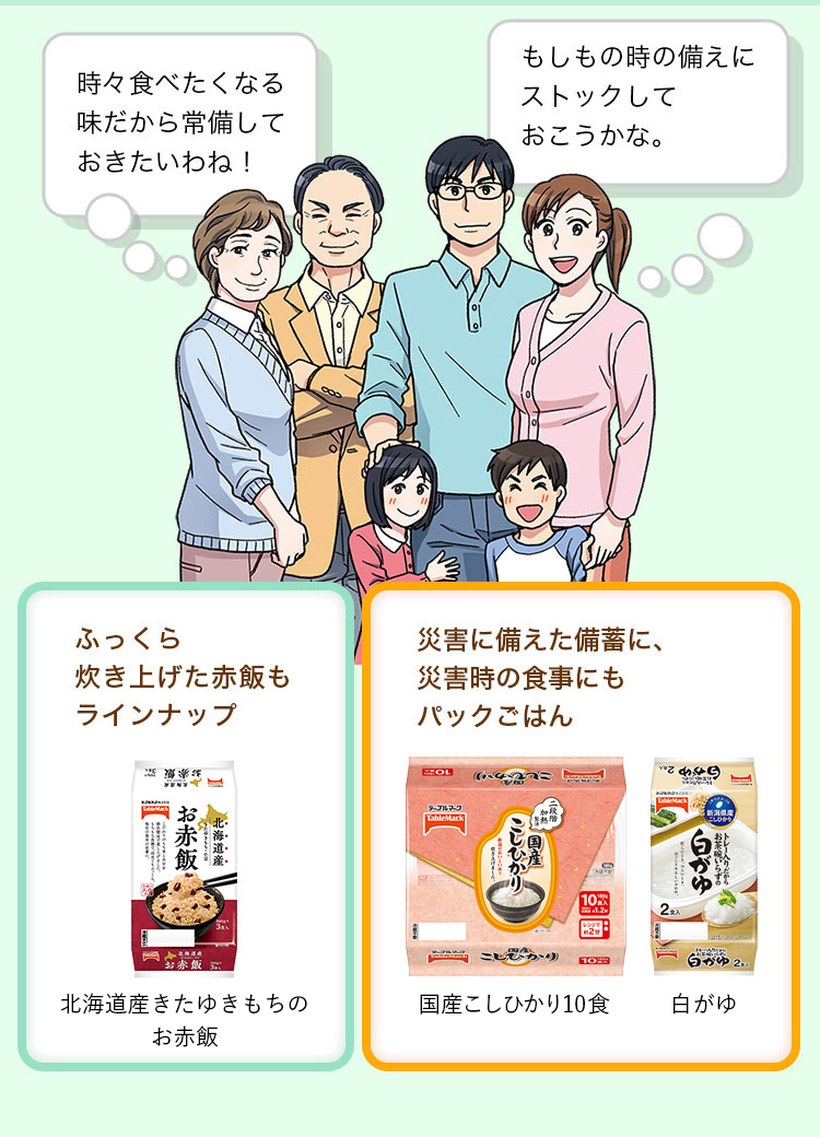 テーブルマークのパックごはんはおいしさはもちろんのこと、