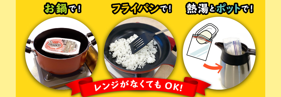 - ※ごはんの重量や加熱条件によって温める時間は異なりますのでご注意ください。