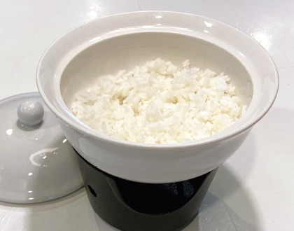 - ※フタがなくても、水を少し多めに入れて加熱すれば、やわらかいごはんに仕上がります。
