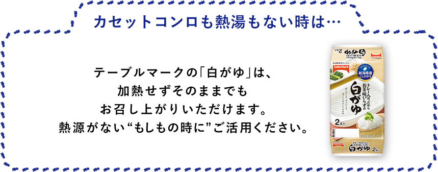 - ①カセットコンロでお鍋にお湯を沸かします。