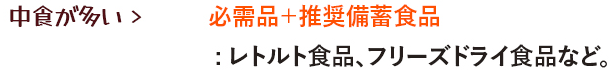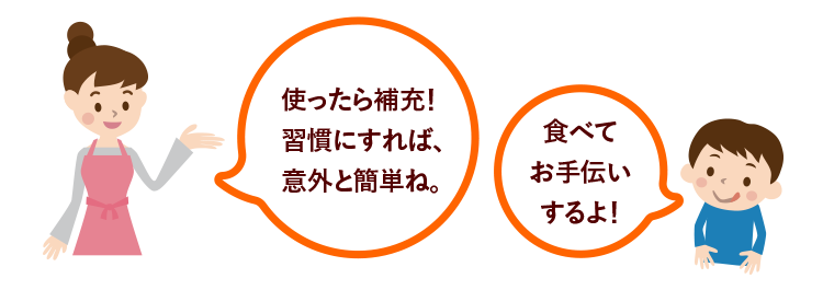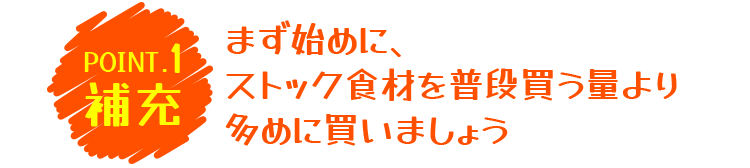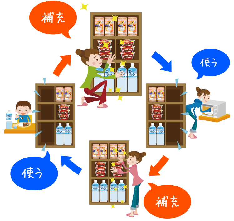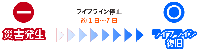 過去の経験によれば、災害発生からライフライン復旧まで1週間以上を要するケースが多くみられます。また、災害支援物資が3日以上到着しないことや、物流機能の停止によって、1週間はスーパーマーケットやコンビニなどで食品が手に入らないことが想定されます。このため、最低1日分~1週間分×人数分の食品の家庭備蓄が望ましいといわれています。