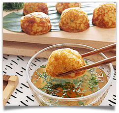 冷たいだしにひたして食べるたこ焼。“ひやあつ”で食べる新しいたこ焼のおいしさ。