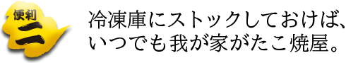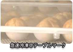 焼きたてのたこ焼は、アッツアツのまま冷凍室へ。急いでやー。カリッとろ~り食感と焼きたて風味をそのまましっかり閉じ込めんねん。そやさかい、レンジでチンするだけで焼きたてのあのうまさが楽しめるんやな。