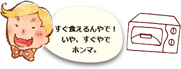 そやで、レンジでチンですぐ食べられるでー・・・って、