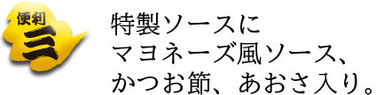 本場大阪では、ソースはもちろん、醤油、醤油マヨ、ポン酢醤油、塩、そのまま何もかけずにと、いろいろな味が選べるお店が多いようです。