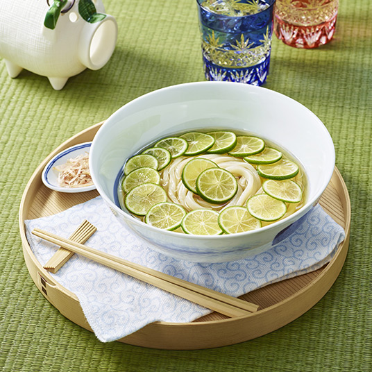 ほどよい酸味、小さな緑色の柑橘系のすだち。かぼすと間違える人もいるかもしれませんが、かぼすより小さく、果皮の香りも強いのが特徴です。ハウス栽培と露地栽培のものがありますが、旬の露地栽培のものは香りや風味が強く、果汁もたっぷりです。ビタミンCがレモンより多いのもうれしい特長。半分にカットして搾ってお酢の代わりに、水洗いして皮をおろし金ですりおろして薬味に、薄くスライスして飲み物や汁物に添えたりと、さまざまな味わい方ができます。保存するときはビニール袋に入れ、空気を抜き冷蔵庫に入れておくと緑色が長持ちし風味を損ないません。長期保存したい場合は、搾汁して小瓶に入れて冷蔵庫で保存します。
