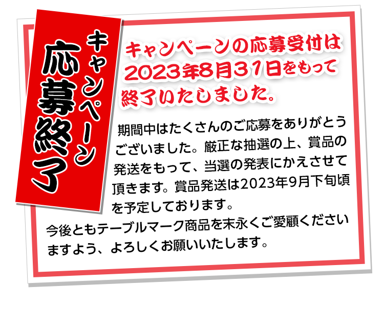 - キャンペーン締切間近はアクセスが集中し、繋がりにくくなる場合がございます。お早めにご応募ください。