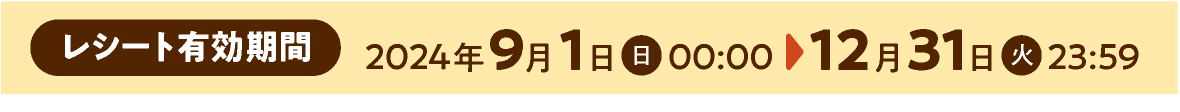 レシート有効期間:2024年9月1日(日)00:00~2024年12月31日(火)23:59