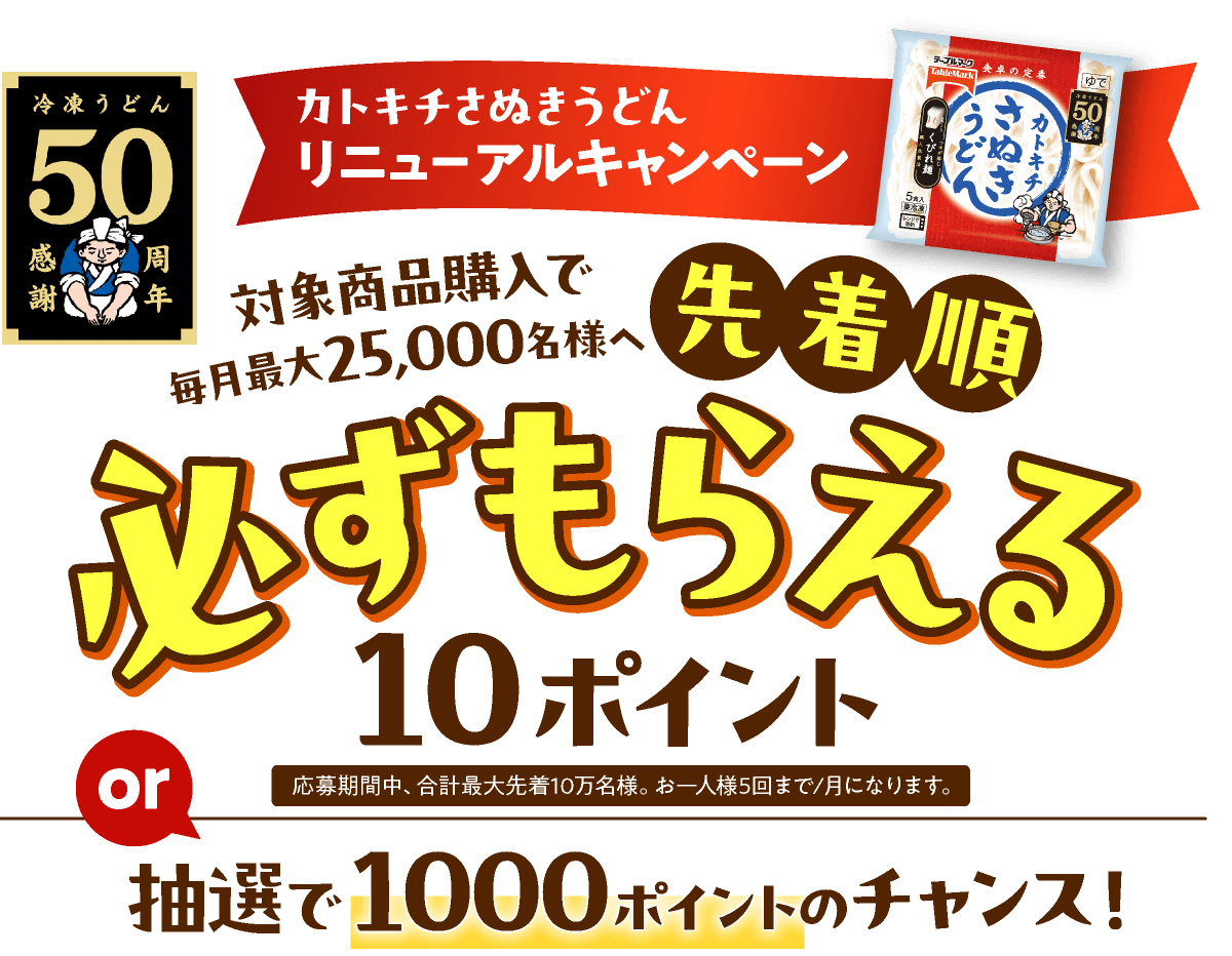 テーブルマーク冷凍うどん 50周年 カトキチさぬきうどんリニューアルキャンペーン