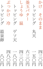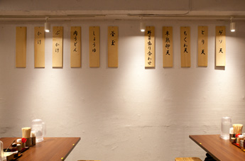 うどんのメニューもいたってシンプル、かけ・ぶっかけ・しょうゆに、釜玉と肉うどんが加わった5種類のみ。あとは自由に天ぷらやかまぼこをトッピングすればいいのだが、とにかく「うどんを堪能してほしい」という想いが端々から伝わってくるお店だ。