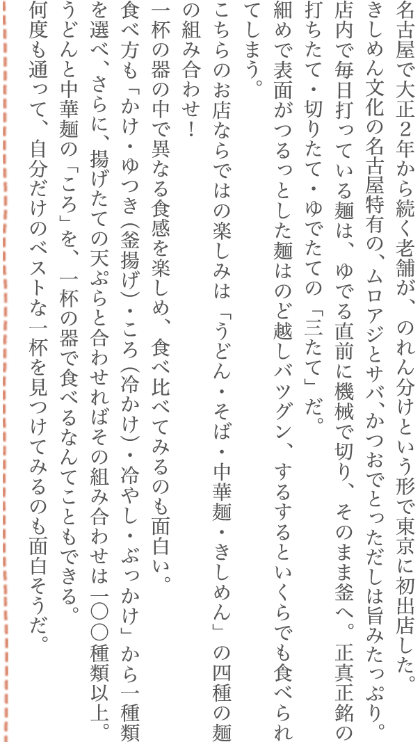 名古屋で大正2年から続く老舗が、のれん分けという形で東京に初出店した。