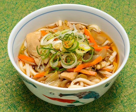 2010年(平成22年)の小松市制70周年の折には、「小松うどん定義八か条」が定められ、「小松市内で製造された麺であるべし」「白山水系の水で仕込むべし」「具材は“じのもん”をできる限り使うべし」などといった約束事を定め、「小松うどん」による地域ブランド作りを始めています。こうした取り組みによって加盟店も増え、さまざまなバリエーションの小松うどんを味わうことができるようになりました。温、冷のどちらでもおいしくいただけるため、一年中ほとんどの店舗でどちらのタイプも用意しています。