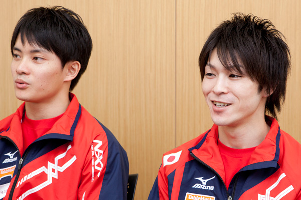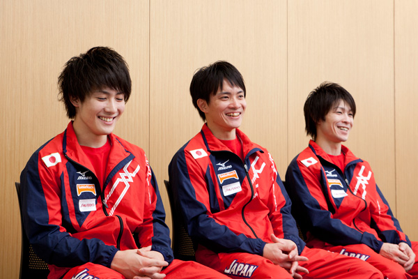 内村「僕は、今年で代表選手として活動させてもらうのが7年目になるんですが、最初の1、2年ぐらいはあまり自覚がなかったので、体操以外はどうでもいいやみたいな感じだったんですけど(一同爆笑)、毎年代表に入るようになり、成績も上がるにつれて、自分の中でも変化してきて。やっぱり一人じゃここまで来られなかったということを、最近とくに感じるんです。常に応援してくれる人には感謝の気持ちを伝えられるように、演技でも私生活の上でも意識しています」